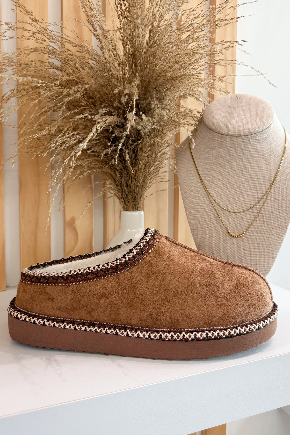Slip into the Very G Georgina Slippers (Tan) for cozy comfort with a fun twist. Their soft, snug lining keeps your feet warm while the patterned trim adds a touch of style. Perfect for lounging, these slippers give you the warm, fuzzy feeling you want without sacrificing flair. Say goodbye to chilly toes and hello to your new favorite slip-ons!