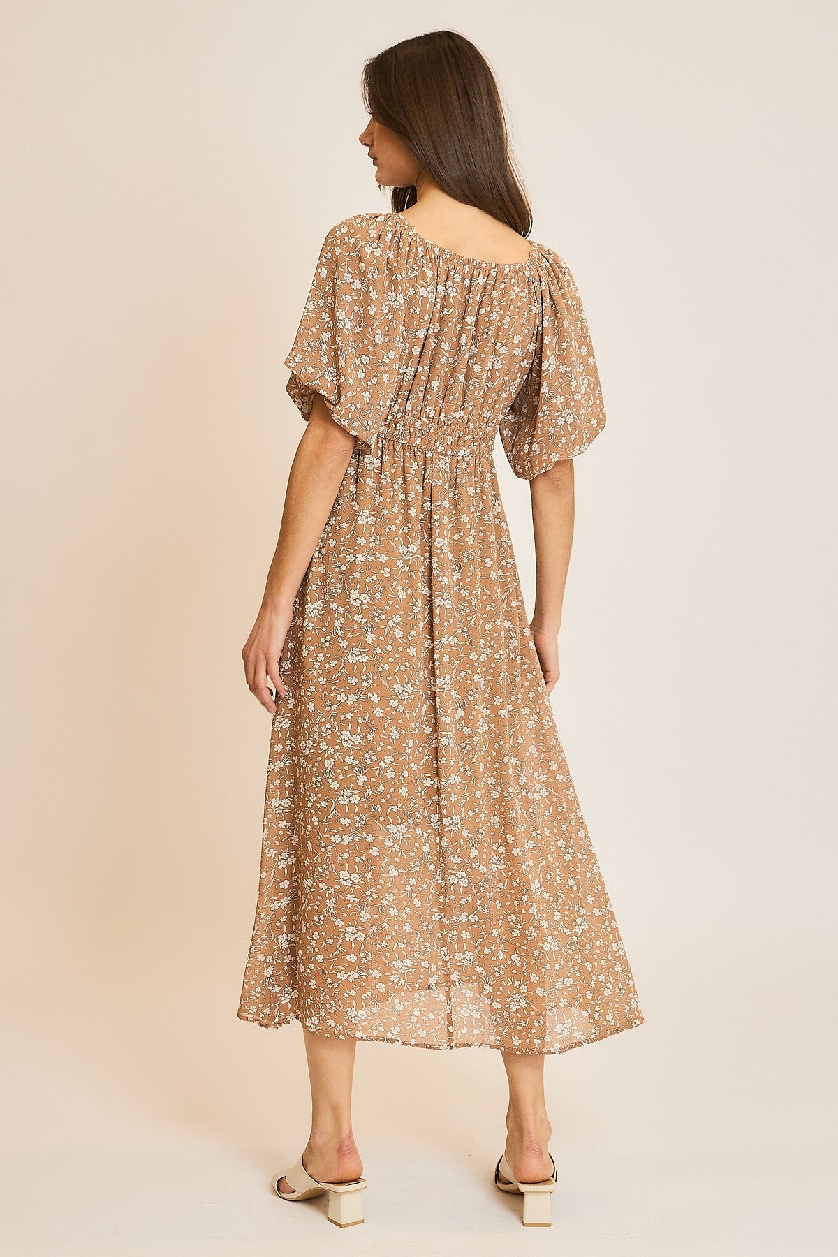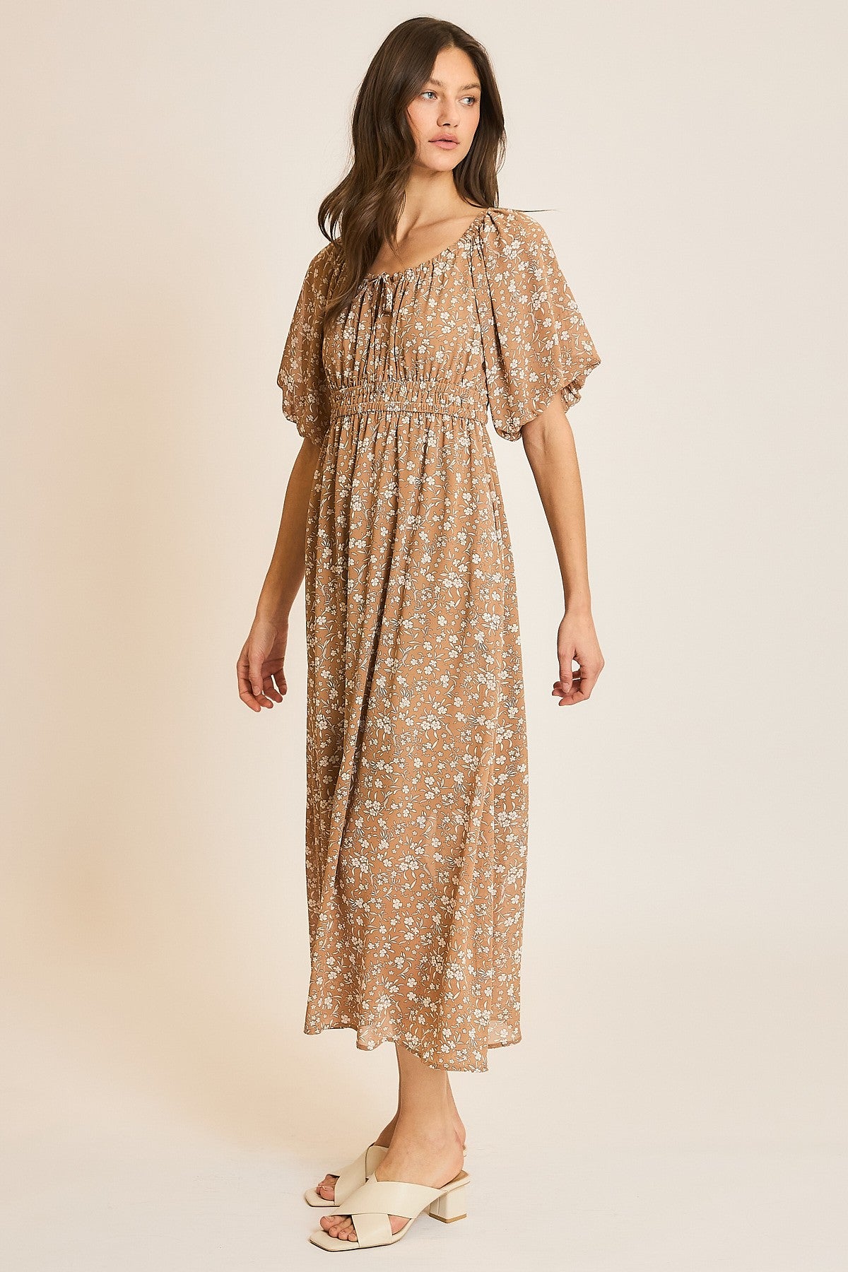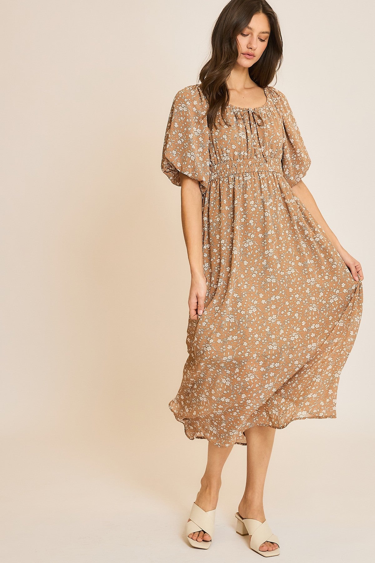 Embrace effortless style with the "Move With Purpose" Dress in warm mocha. Featuring a smocked waist for a flattering fit, this midi dress offers playful front tie details and handy side pockets. Fully lined for comfort, it’s perfect for twirling through your day with confidence and charm.