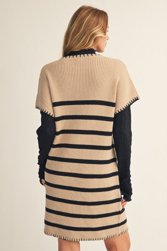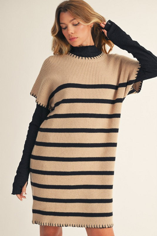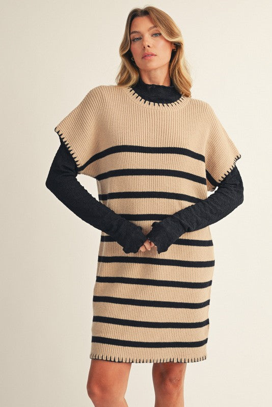Cozy meets cool in the "What It's About" Dress. This oatmeal sweater dress features a fun drop shoulder stripe pattern and charming stitch details that add a playful twist to your everyday look. Perfect for lounging or stepping out, it’s your new go-to for effortless style and comfort.