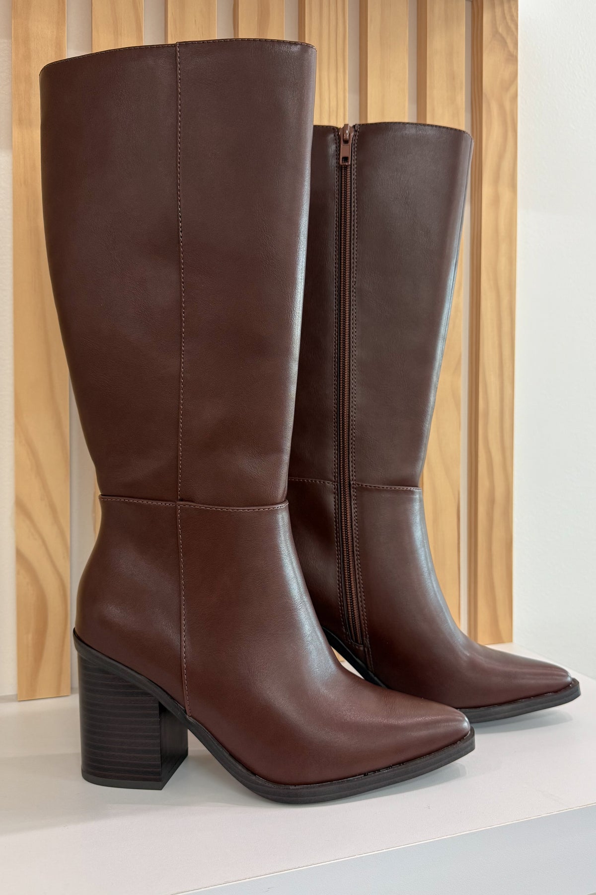 Step up your style game with the Jackie Boots in brown! These knee-high beauties feature a slick pointed toe and a fully functioning side zipper for easy on and off. Crafted from durable polyurethane leather, they bring the perfect mix of edgy and chic to any outfit. Perfect for strutting through your day with confident flair.