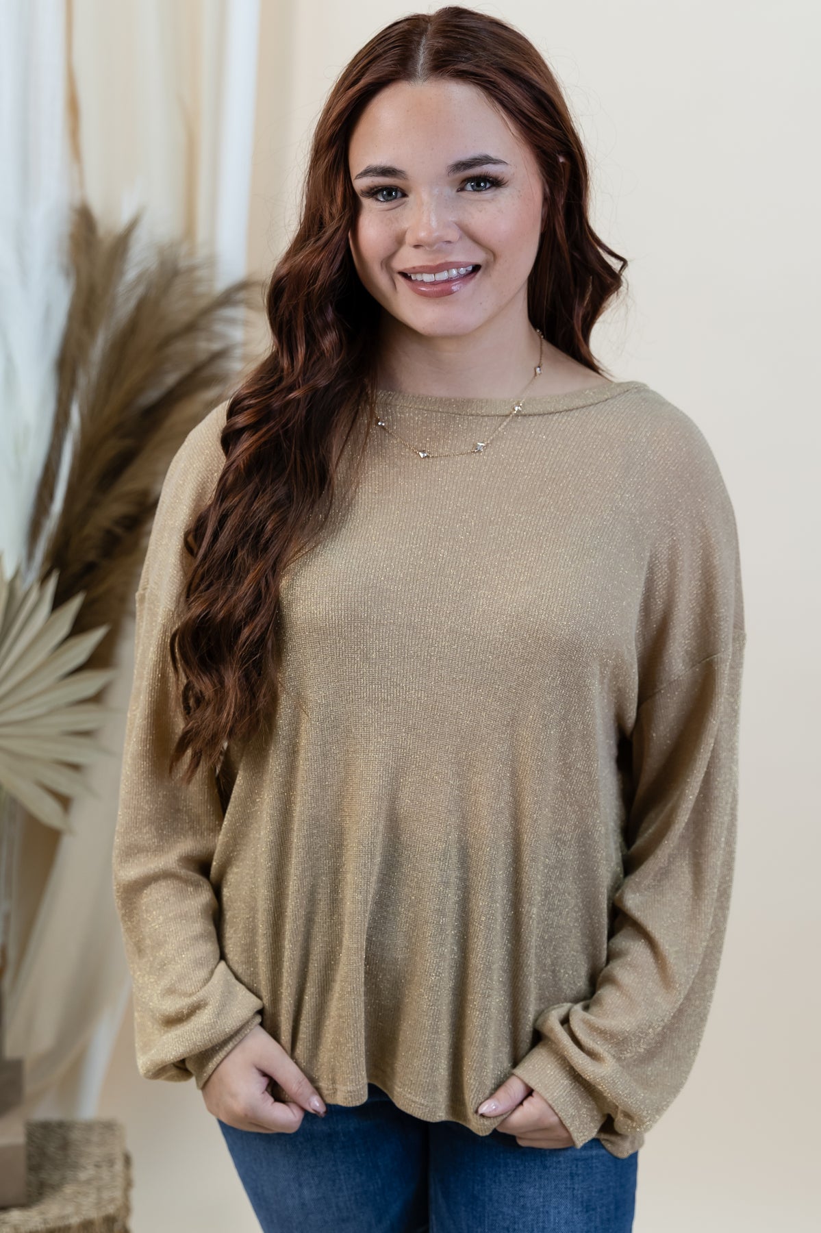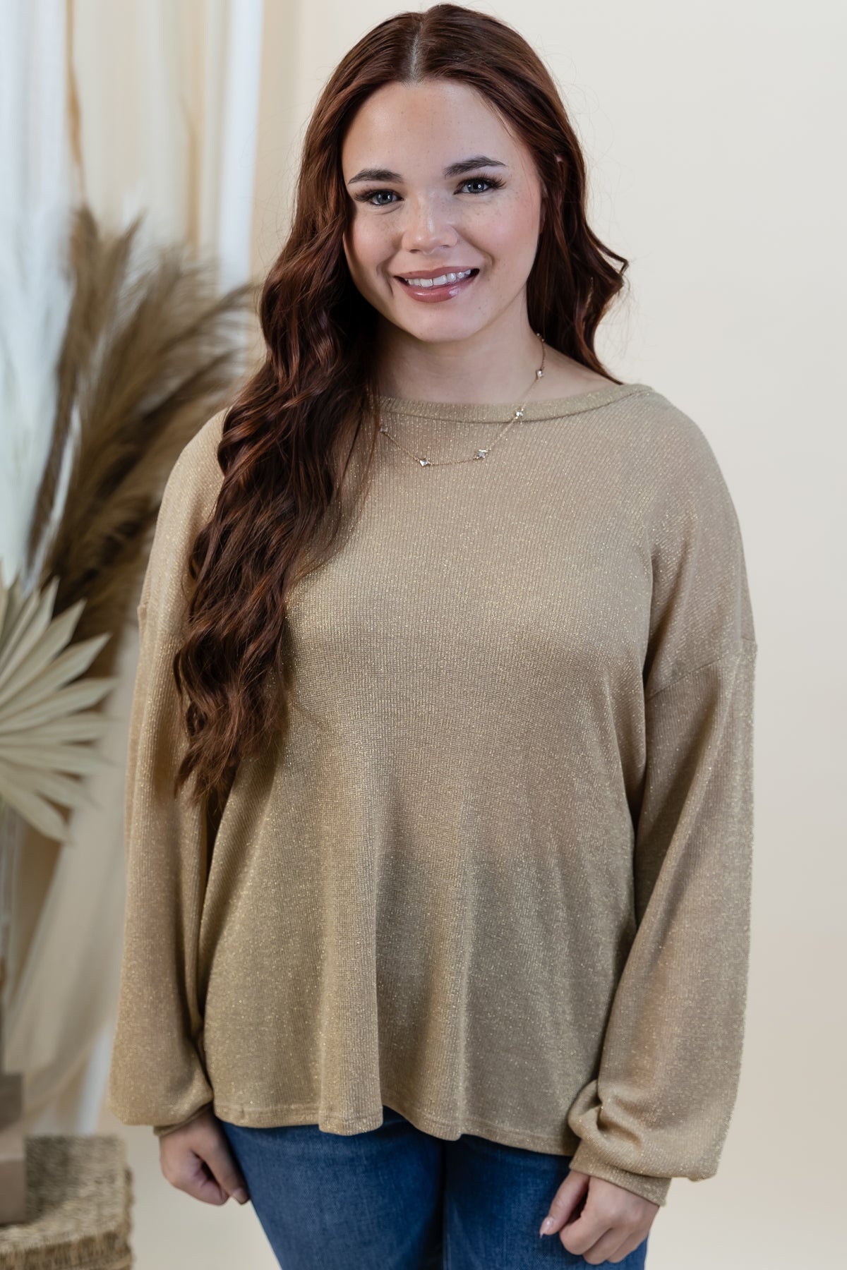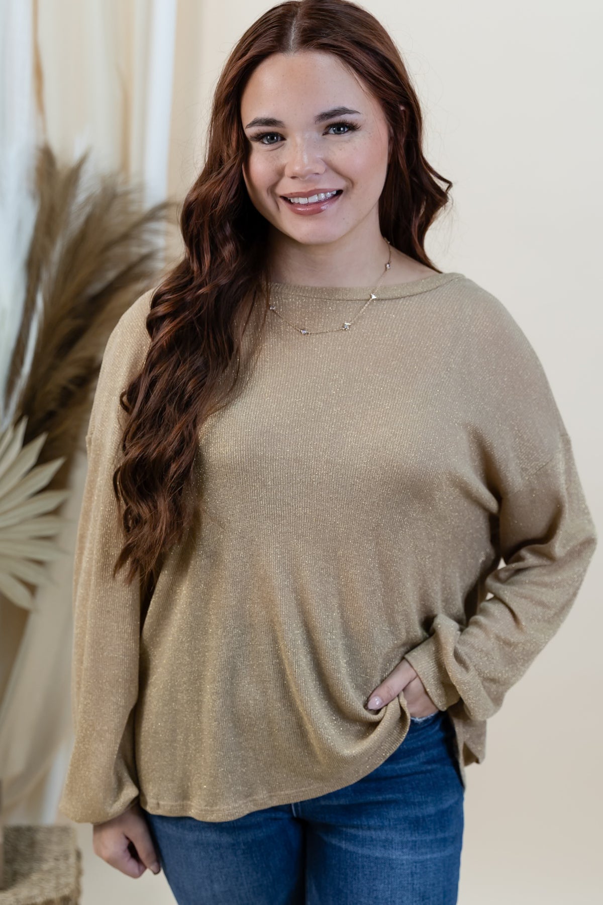 Bring a playful twist to your wardrobe with the "Ends Of Time" Top in shimmering gold. This long-sleeve beauty features a chic back scoop neck and a unique layered twist design, adding movement and flair to your look. Perfect for moments when you want to shine and feel effortlessly stylish from day to night.