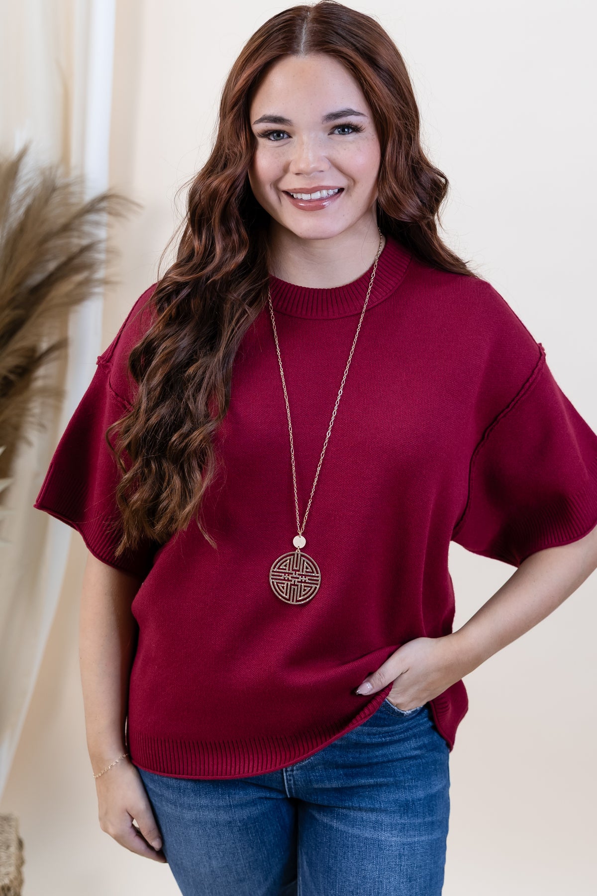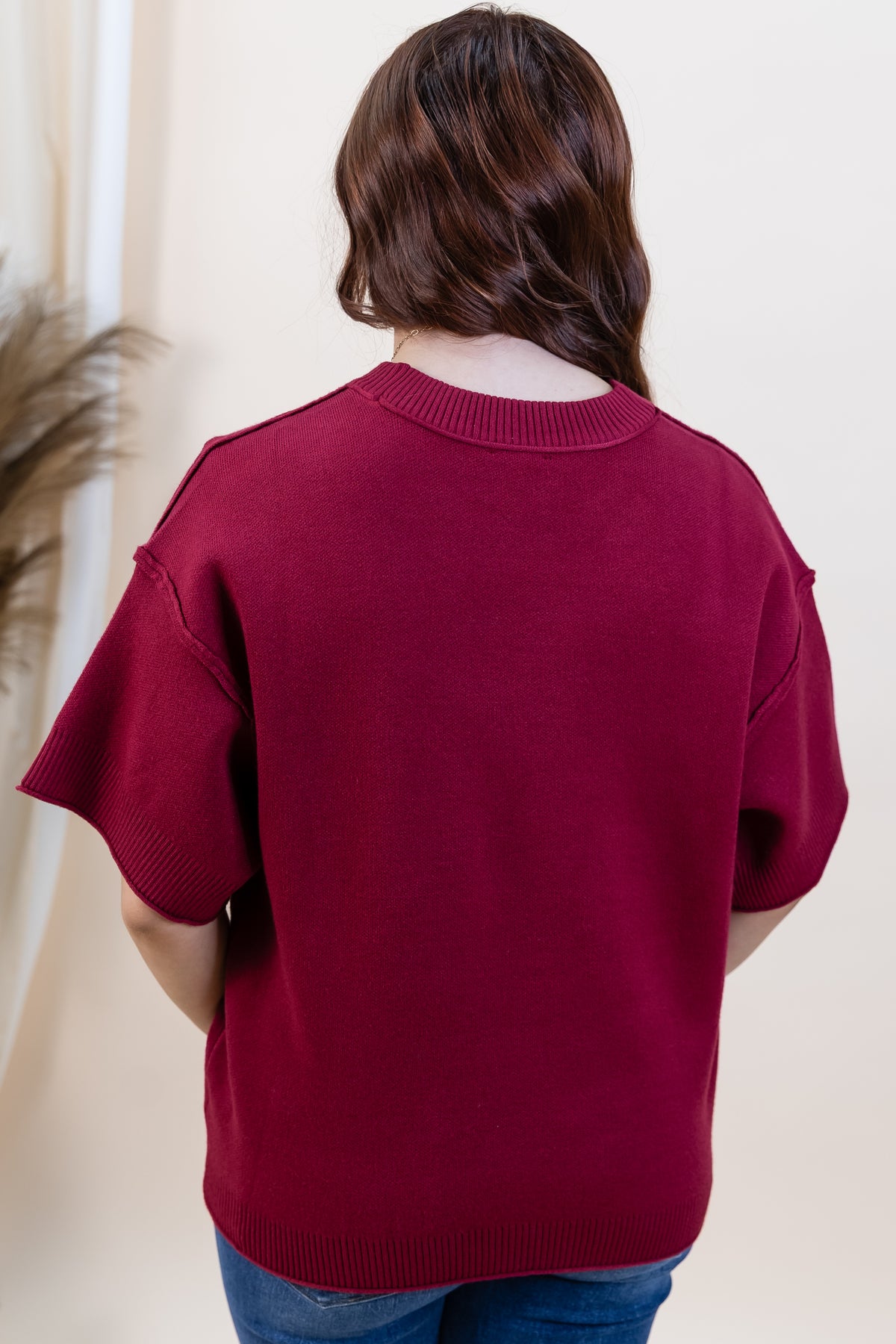 Throw on this breezy "Everyday Comfort" sweater top and instantly elevate your casual wardrobe! The short sleeves keep things cool while the soft knit fabric hugs you just right—perfect for layering or wearing solo. Whether you're running errands or meeting friends for coffee, this versatile burgundy piece pairs effortlessly with jeans, skirts, or shorts. Cozy never looked so good!