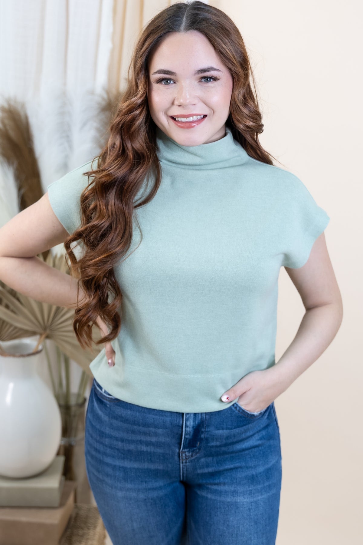 Get cozy with the "Finding Balance" Top in mint—a playful twist on the classic mock neck pullover. This lightweight, solid knit design is unlined and non-sheer, making it perfect for layering or wearing solo. It’s your new go-to for effortless style and comfortable days!