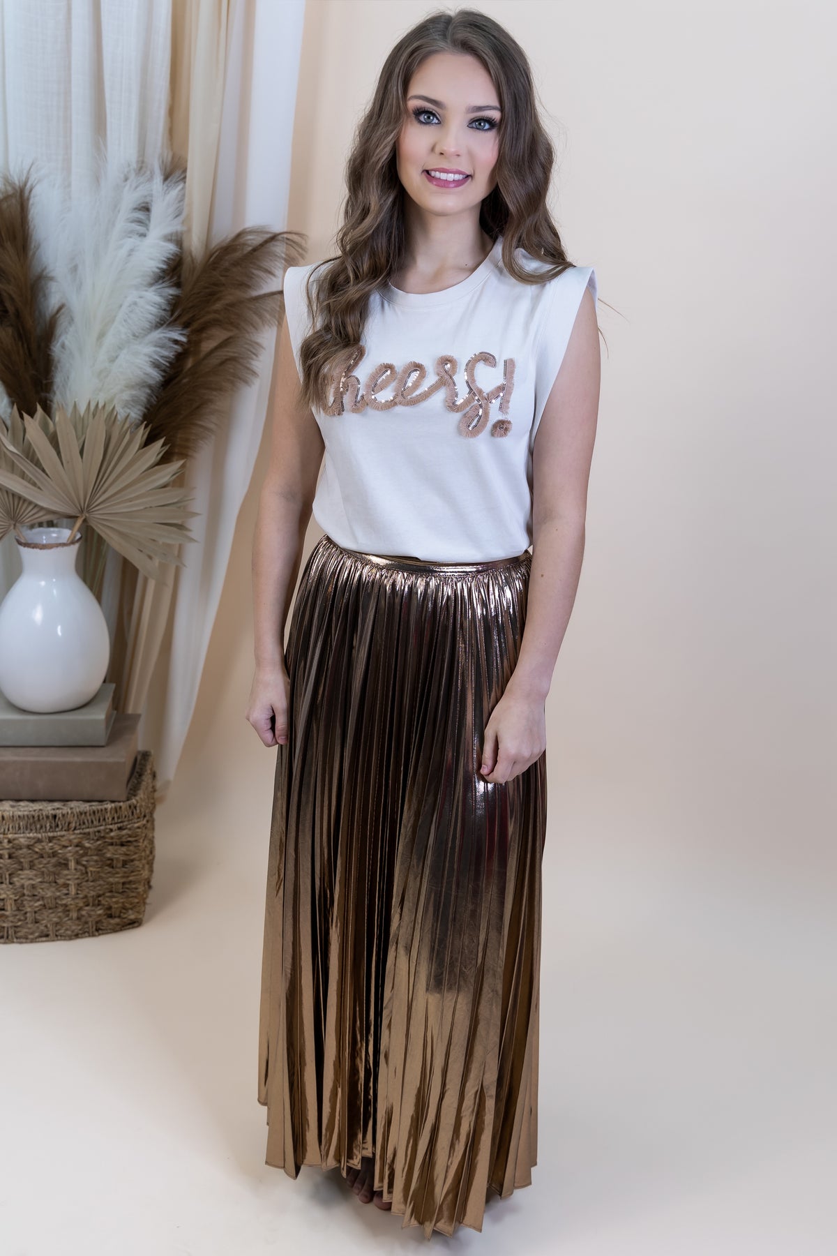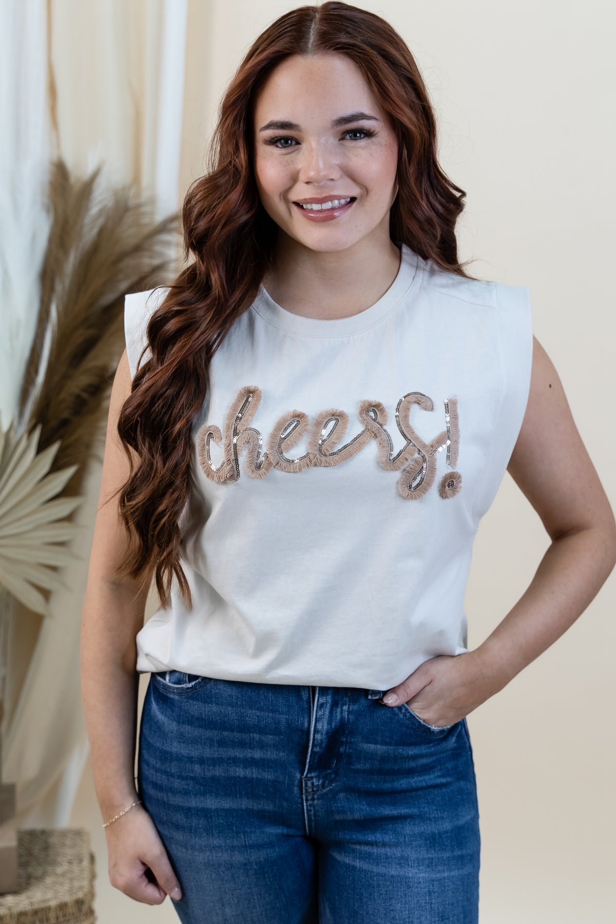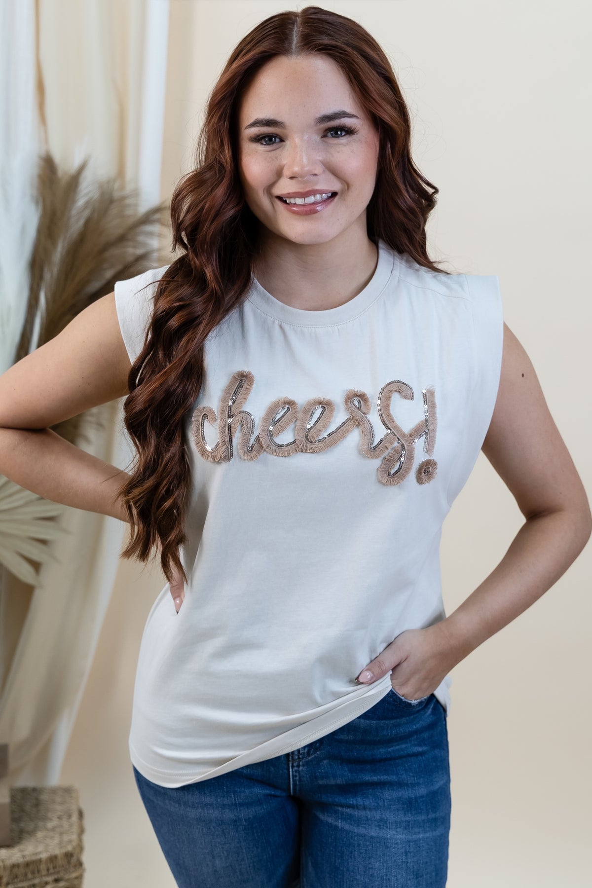 Raise a glass to festive style with this charming embellished sleeveless top! Featuring delicate beading and sequin details that catch the light beautifully, it's perfect for holiday parties, New Year's celebrations, or any occasion worth toasting. The cream and champagne palette offers elegant versatility—dress it up with tailored trousers or keep it casual with your favorite jeans. Sleeveless design makes layering effortless for any season. Cheers to looking fabulous!