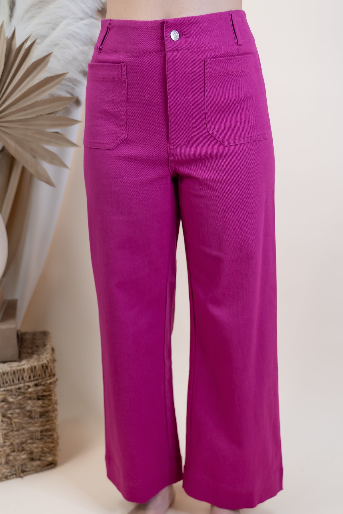 Bring bold style and comfort together with the "Making A Change" Pants in hot pink. These soft washed wide-leg pants flow effortlessly, creating a fun, carefree look. Featuring a secure button closure and two roomy front pockets, they’re perfect for keeping essentials close while you strut your stuff. Add a pop of color and a splash of confidence to your wardrobe with these playful, easygoing pants.