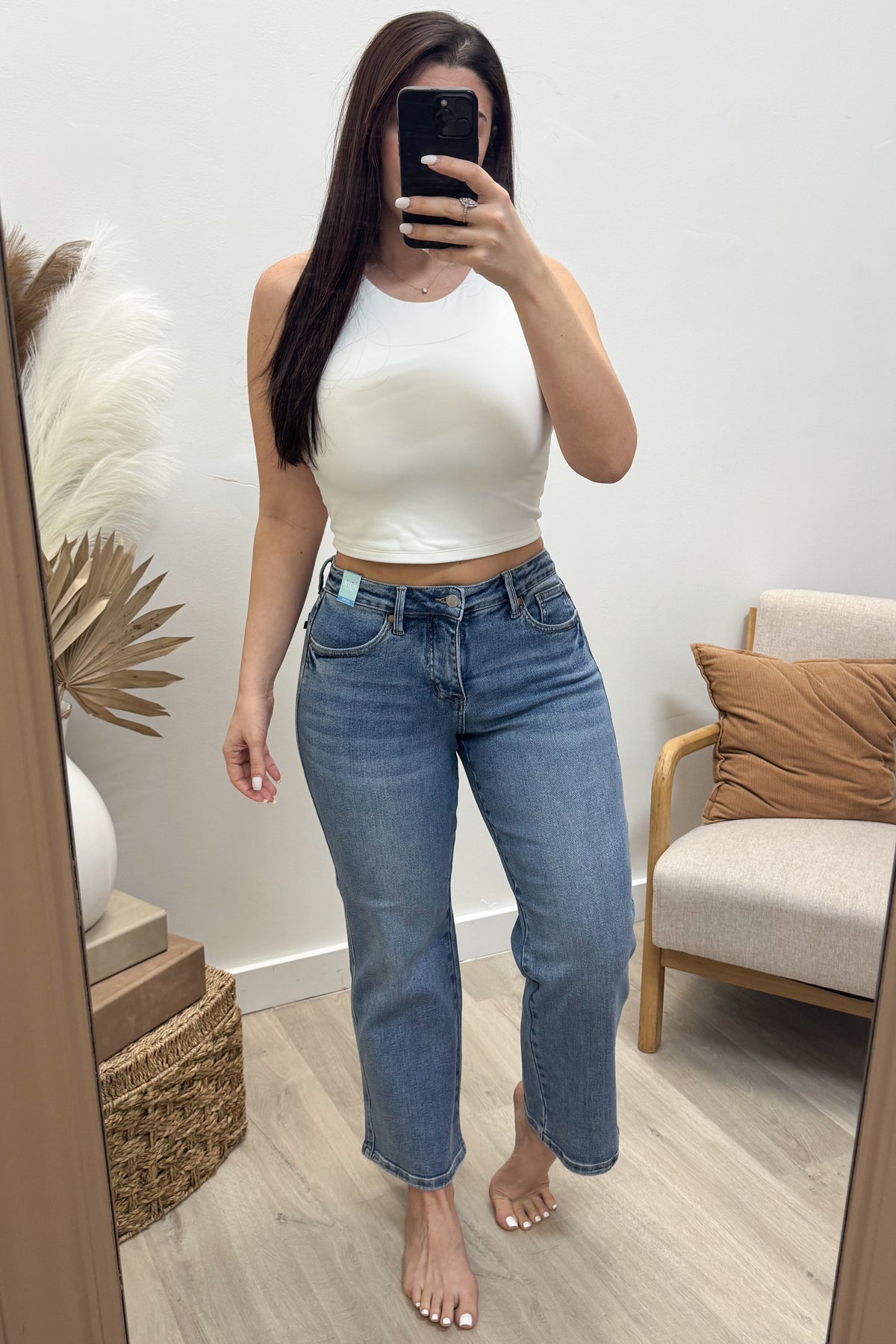 Slip into the Ryleigh Petite Straight Leg Jeans and feel confident from waist to hem! These mid-rise beauties feature built-in tummy control that smooths and flatters, while the timeless vintage wash adds effortless cool-girl charm. The classic straight leg silhouette works with everything in your closet—dress them up with heels or keep it casual with sneakers. Designed for petite frames, they're the perfect fit that actually fits. Say hello to your new favorite jeans!