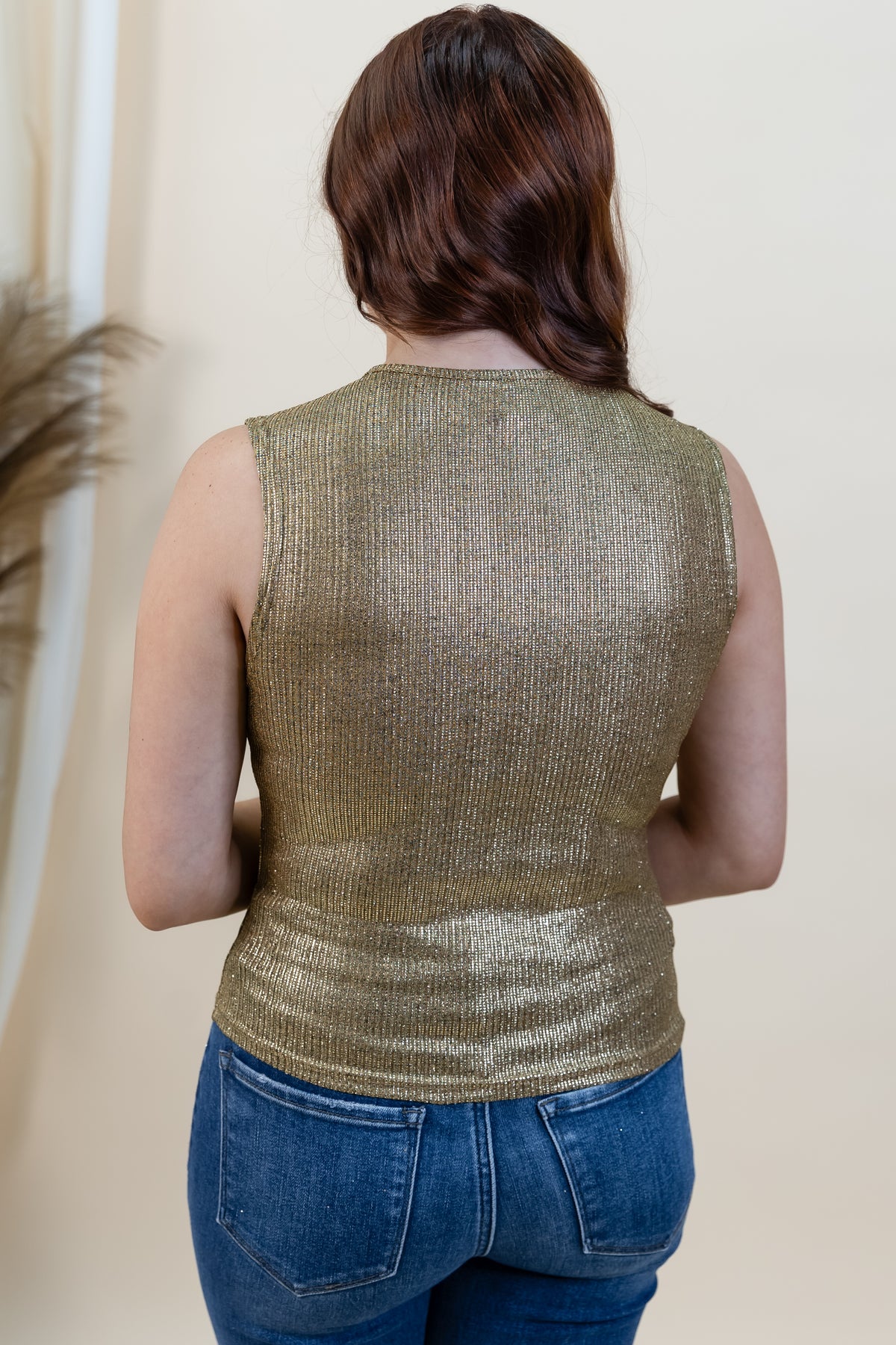 Get ready to sparkle with the "Shine On Me" Top in gold! This playful round neck knit top features covered shoulders and an all-over glitter finish that catches the light every time you move. Perfect for turning heads at any party or glam occasion, it combines comfort and shimmer effortlessly. Brighten your wardrobe and let your shine do the talking!