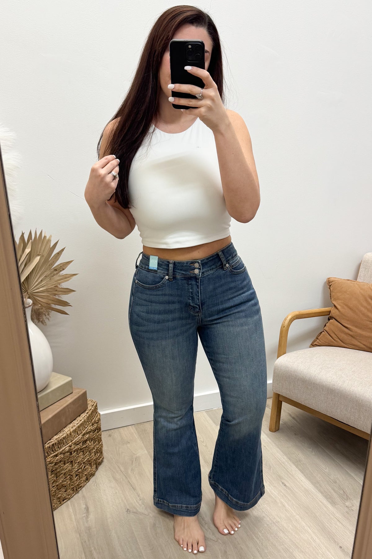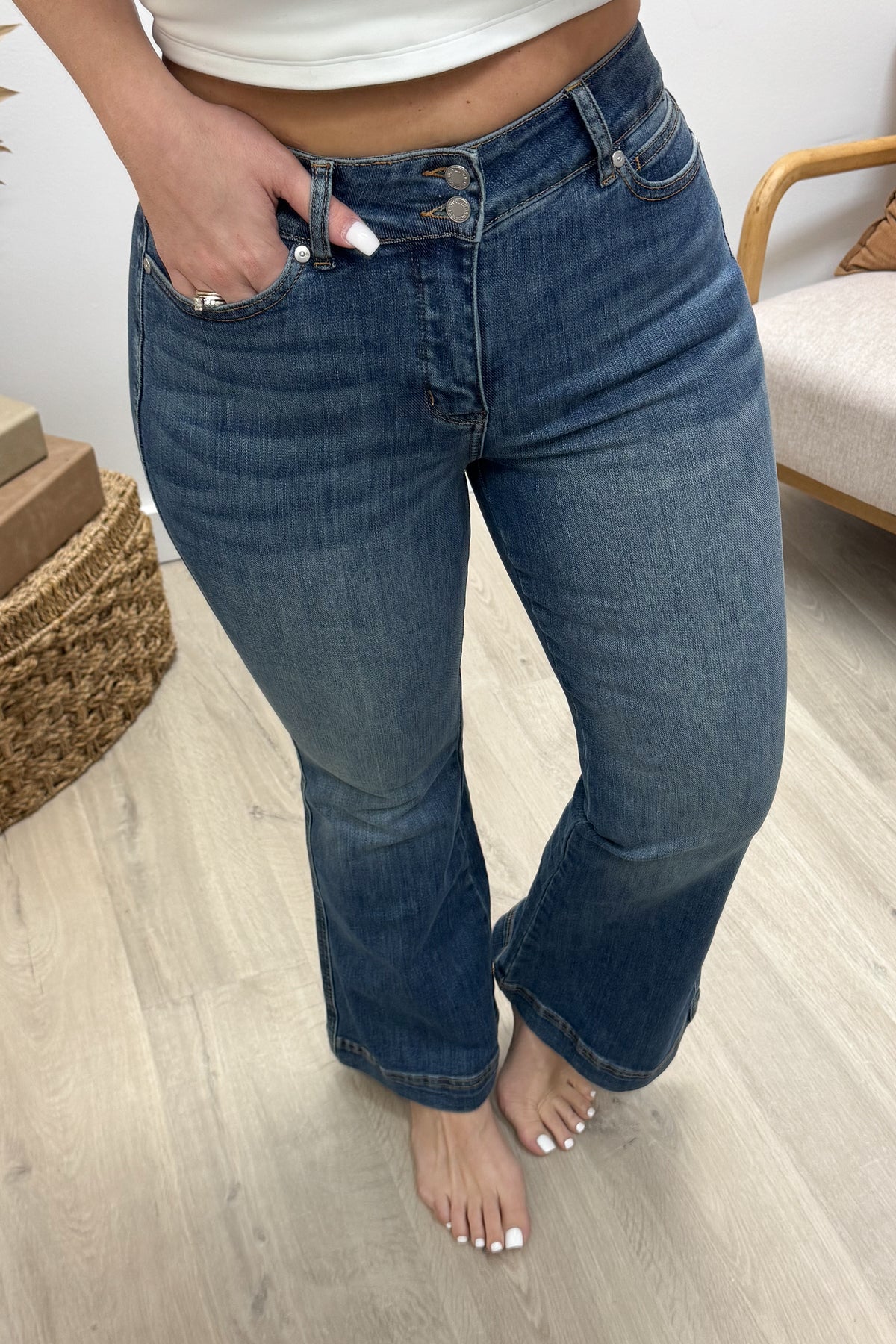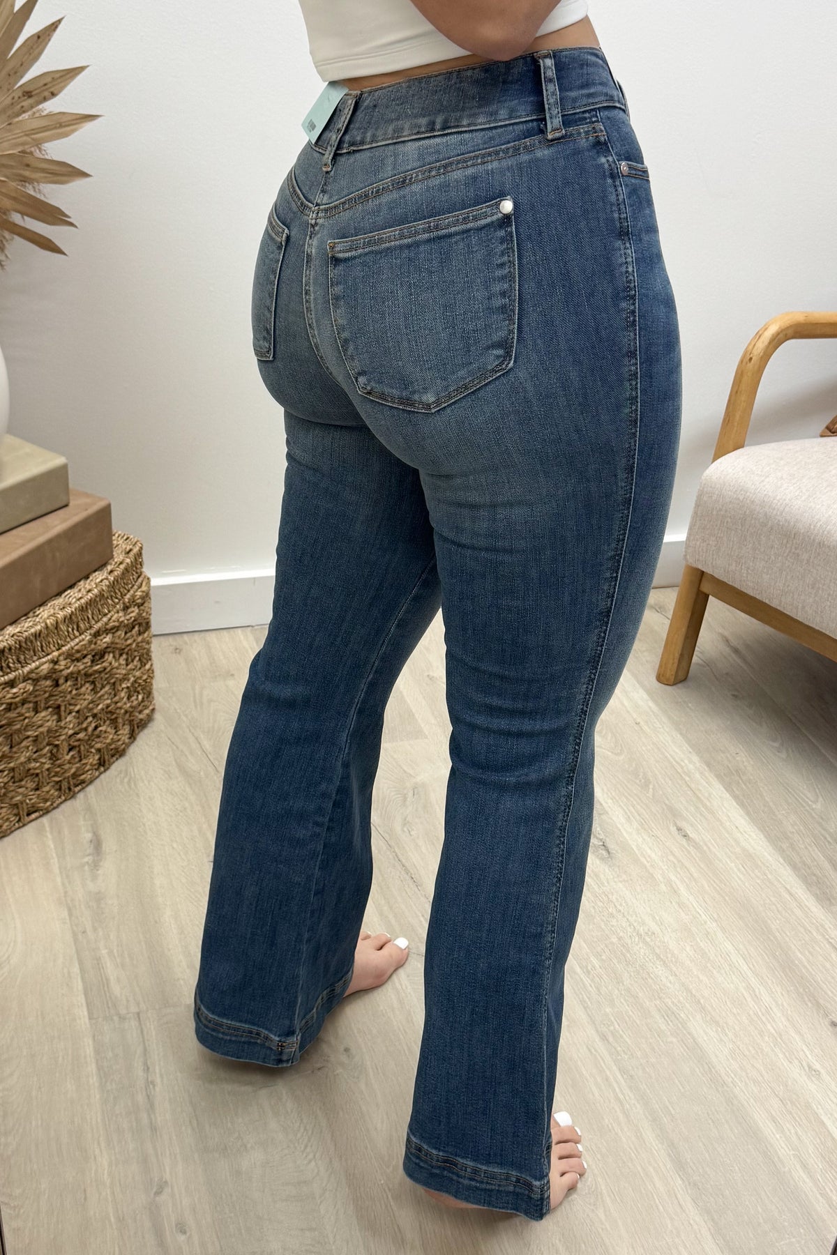 Flatter your silhouette with these chic Sloane Flare Jeans, featuring innovative tummy control technology that smooths and shapes without sacrificing comfort. The double-button waistband design offers a secure, customizable fit that moves with you throughout the day. Perfect for creating that effortlessly polished look, these flares combine retro-inspired style with modern functionality. Slip them on and feel confident from morning to night—because looking good should feel just as amazing as it looks!