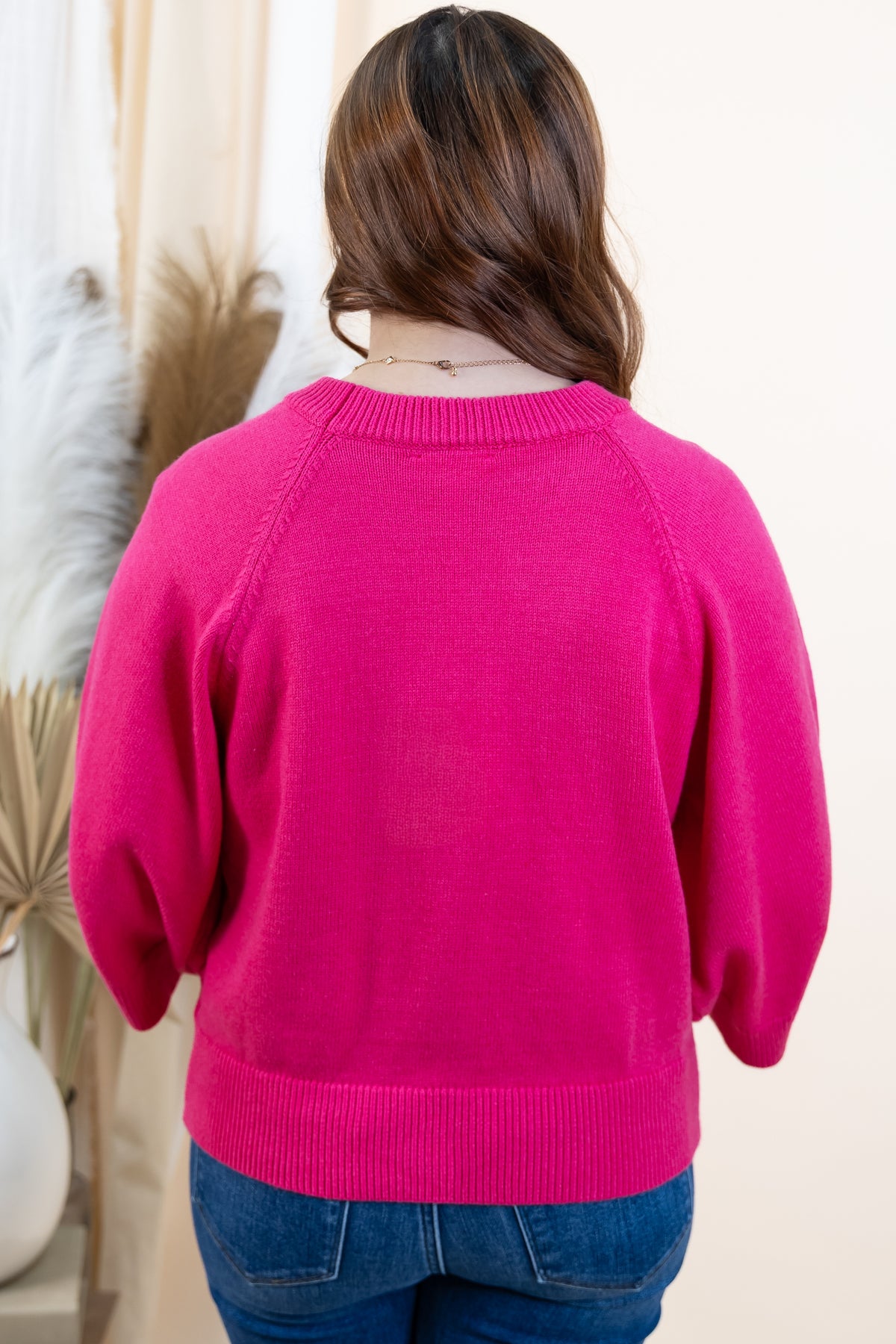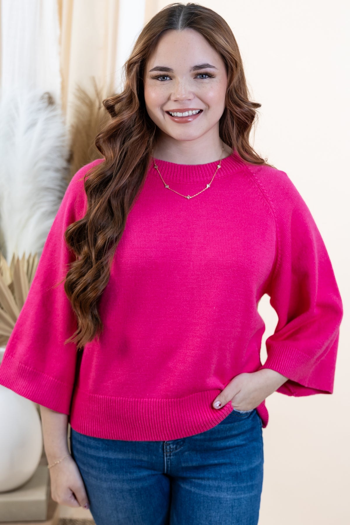 Cozy up in our "Soft Start" Sweater, the perfect layering piece for effortless style. This solid raglan sweater features flattering 3/4 sleeves and a medium-weight knit that's substantial without being heavy. Ribbed detailing at the neckline, cuffs, and hem keeps everything in place while adding a polished touch. Unlined and non-sheer, it's ready to wear as-is or layer over your favorite tee. Your new go-to for casual comfort.