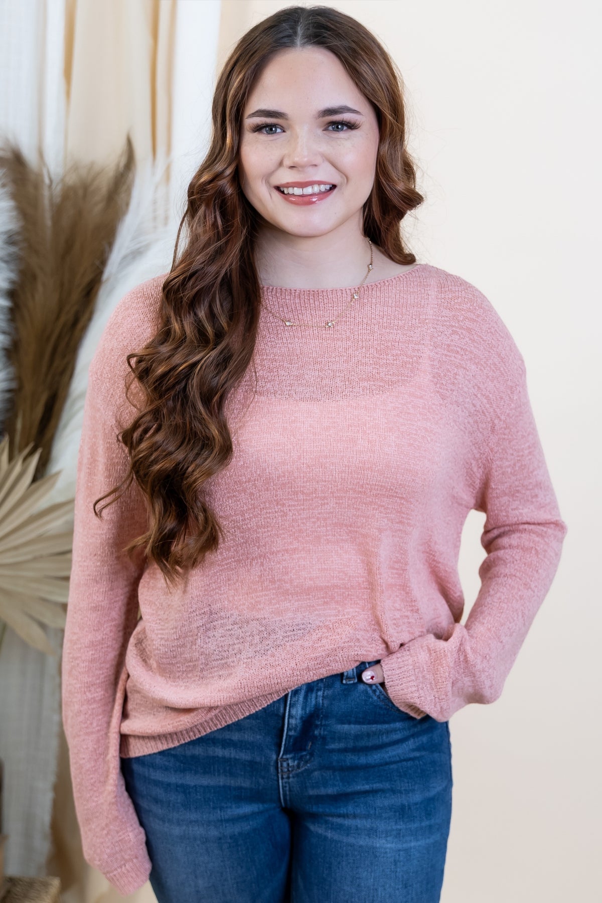 Float through your day in this airy lightweight sweater top! The semi-sheer fabric creates an ethereal, breezy vibe that's perfect for layering or wearing solo when the weather's mild. Crafted for comfort and movement, it's your go-to piece for those in-between seasons when you want something cozy without the bulk. Pair it with your favorite cami or slip dress underneath for a look that feels as light and dreamy as its name suggests.