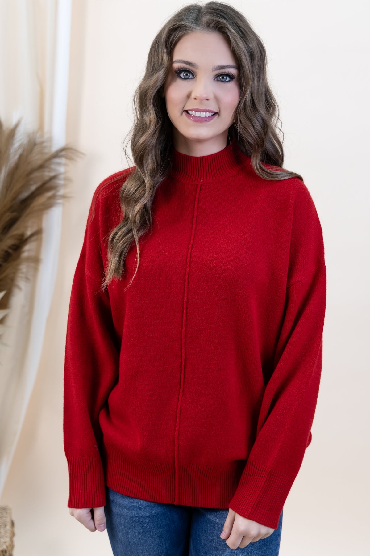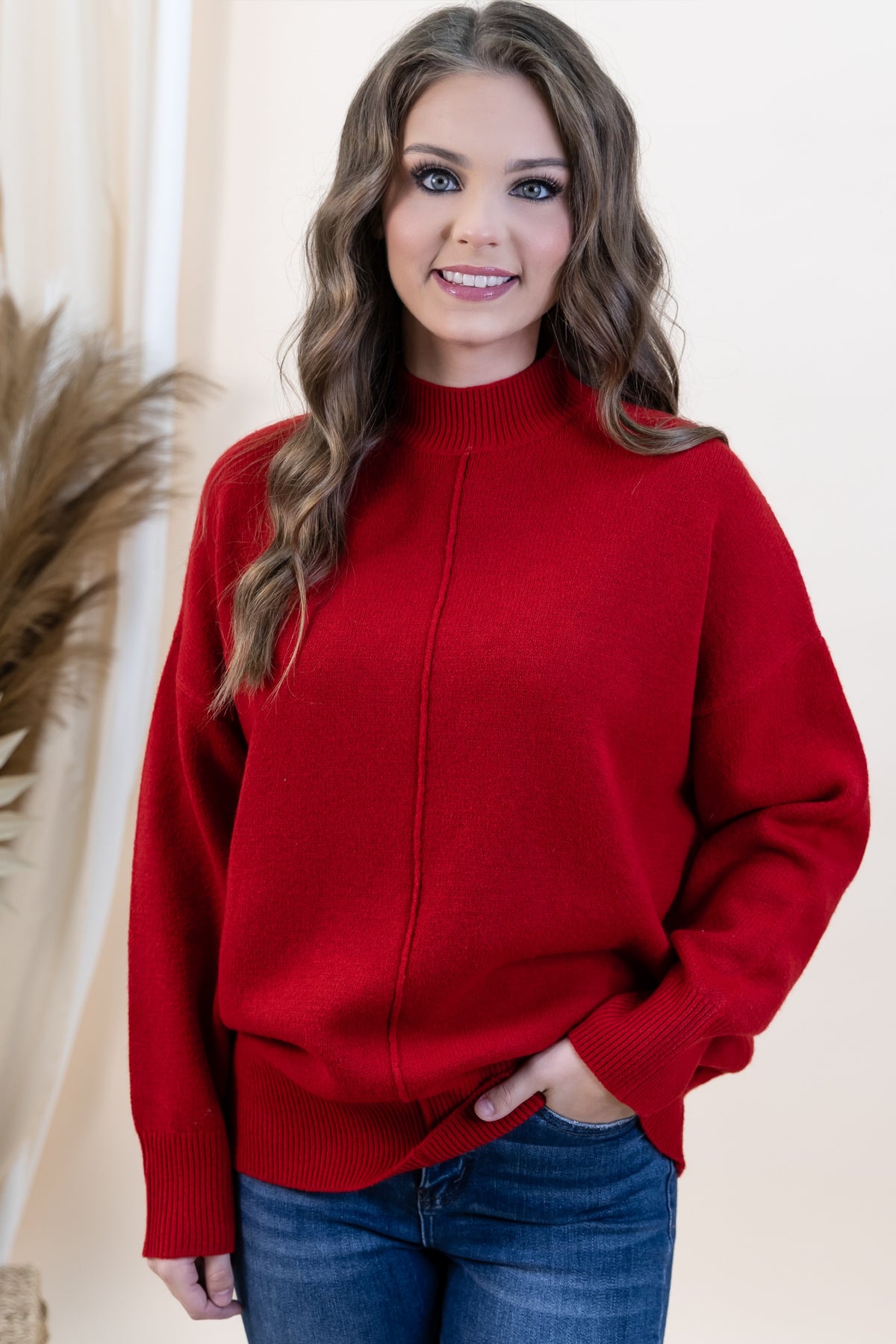 Cozy up in the "Warm Embraces" Sweater—your new favorite knit companion! With a playful mock neckline and relaxed drop shoulder design, it offers effortless comfort and style. The front seam detail adds a cheeky twist, while ribbed knit trim keeps things snug. Perfect for layering or wearing solo, this long-sleeve pullover delivers warmth without the fuss of lining. Embrace every chilly day in vibrant red and all the cozy vibes!