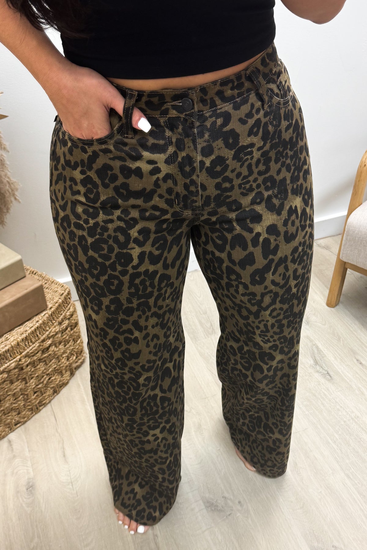 Step into bold style with these Zara Wide Leg Jeans featuring a playful leopard print. Designed with a flattering high-rise fit and retro wide legs, they add a fun and trendy twist to your wardrobe. Perfect for mixing and matching, these jeans bring a confident roar to any outfit.