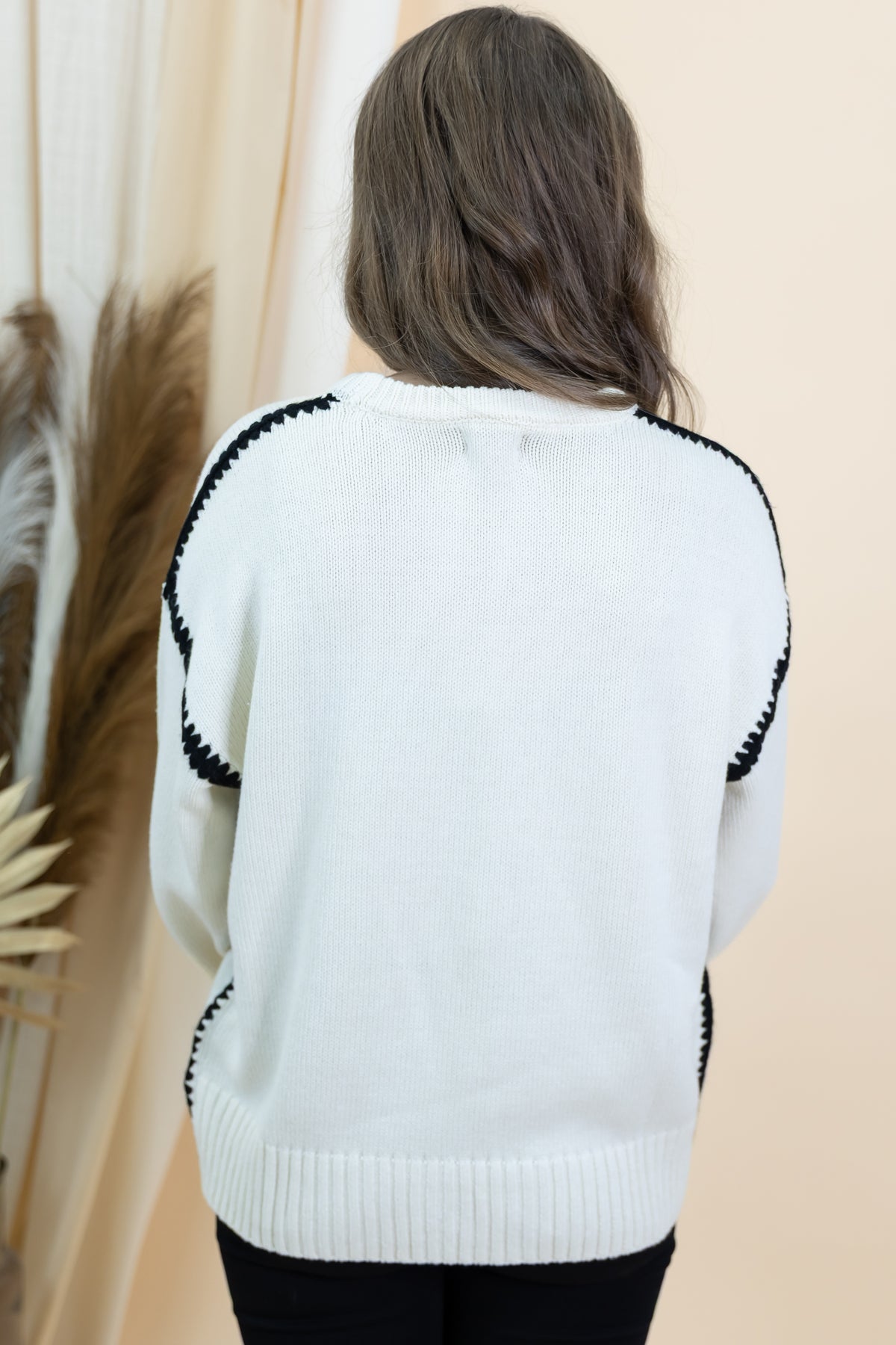 Cozy up in the "Bold Lines" Sweater, where classic cream meets playful contrast details. With a relaxed, oversized fit, drop shoulders, and long sleeves, this crew neck knit pullover keeps you comfy and stylish. Perfect for layering or lounging, it’s your go-to for effortless cool on chilly days.