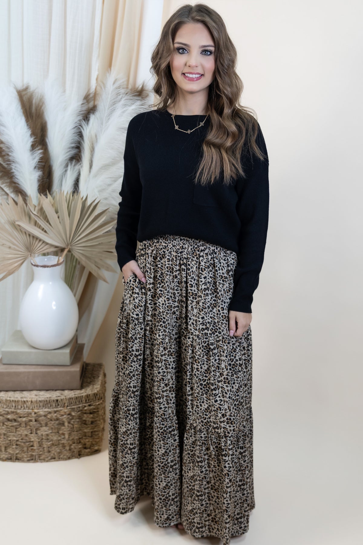 Unleash your style with the "Natural Instincts" Skirt! This fun leopard print features a comfy stretch waistband, handy side pockets, and a flirty tiered layer that adds bounce to every step. Lightweight and non-sheer, it’s perfect for showing off your fierce, playful side with ease.