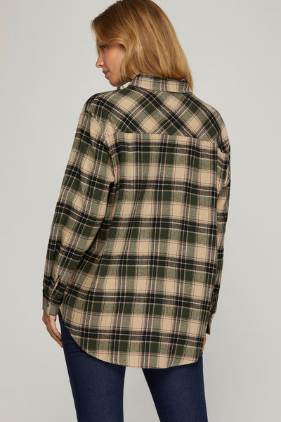 Bring a splash of fun to your wardrobe with the "Always Good" Button Up in green plaid. This long sleeve woven shirt combines classic style with a playful twist, perfect for layering or wearing solo. Its cozy fabric keeps you comfy while the vibrant pattern adds a cheerful vibe to any outfit. Whether you're out for brunch or just hanging out, this shirt is always a good choice!