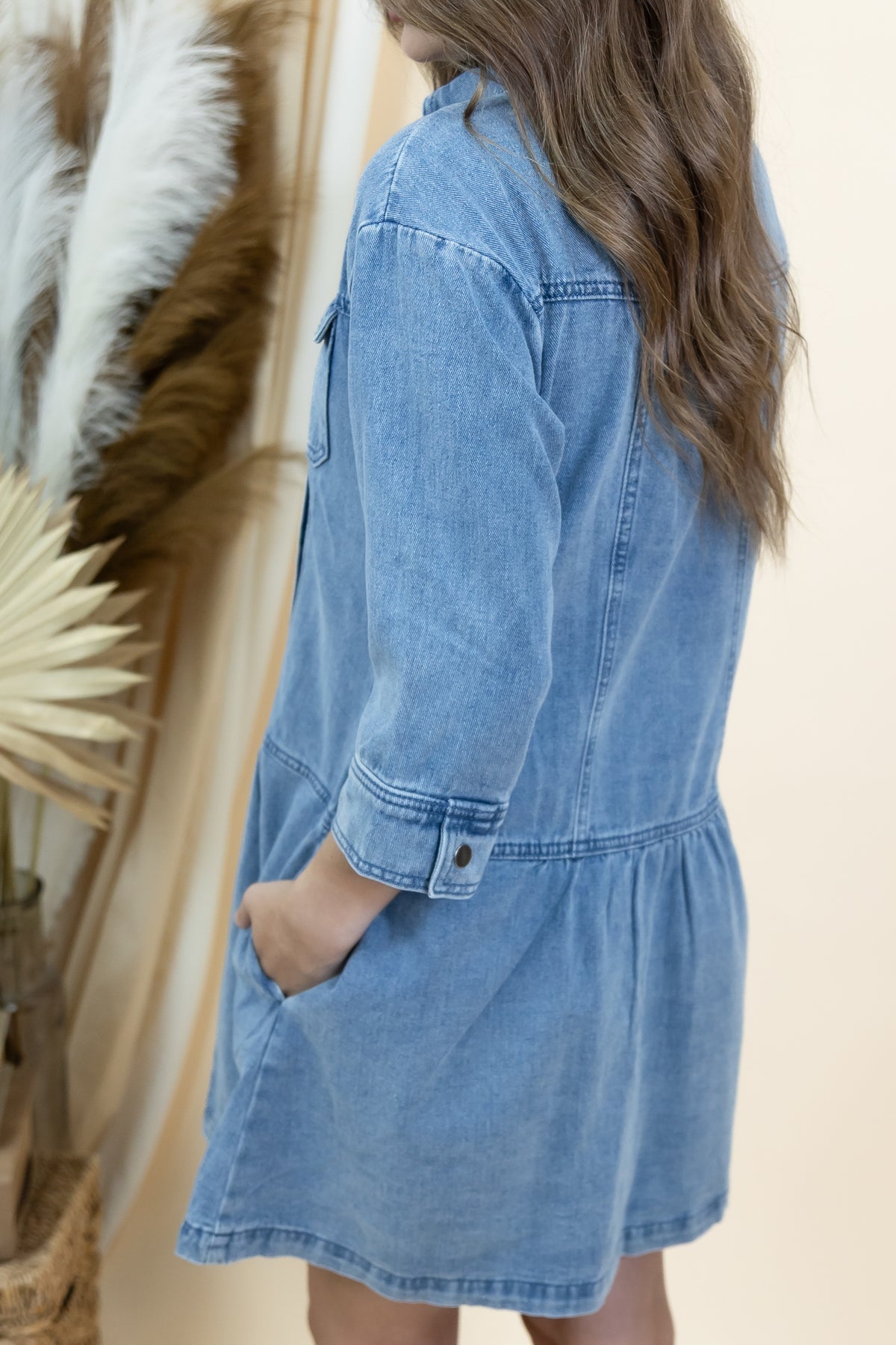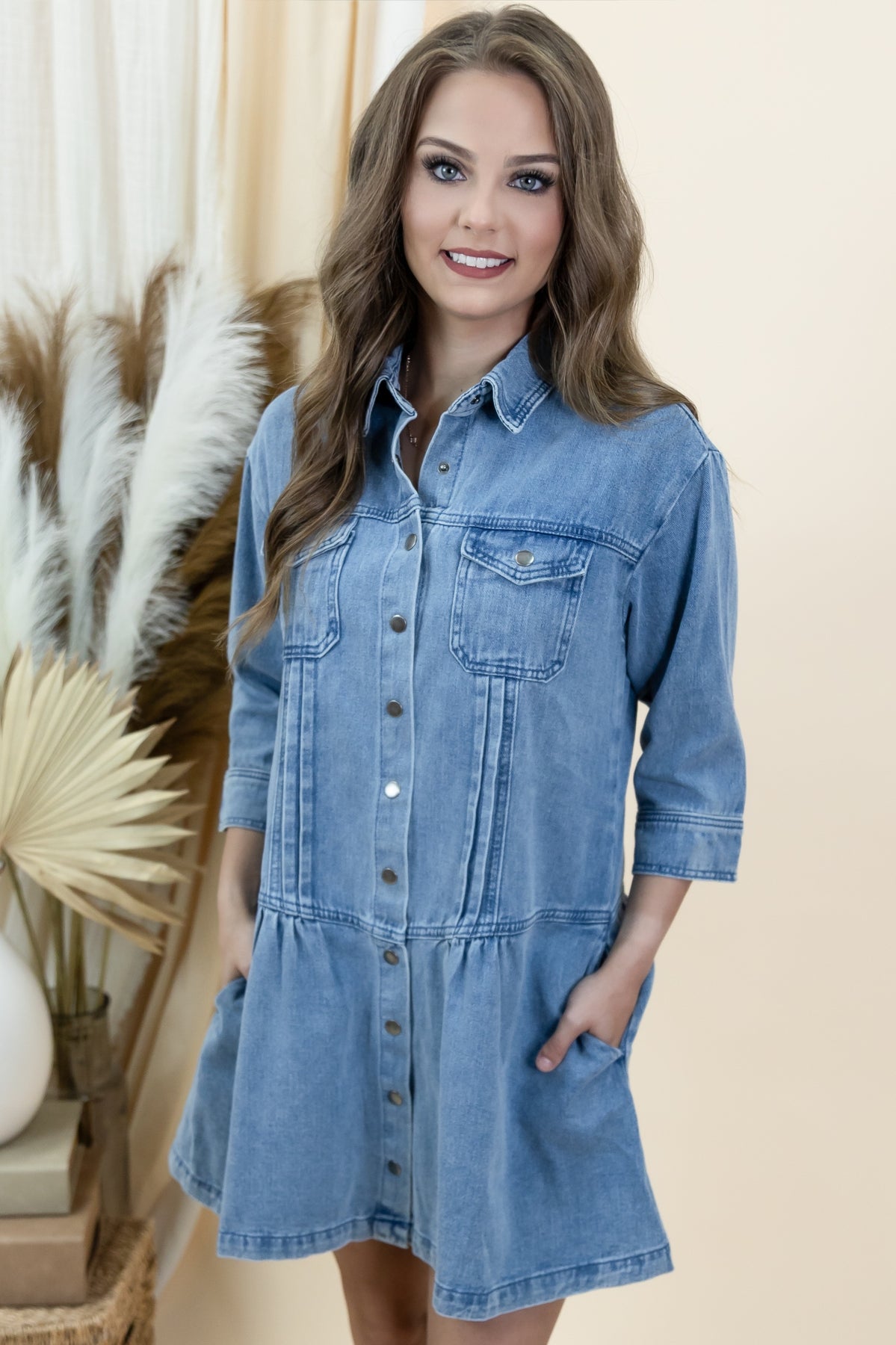 Make a statement in the "Staying In Rotation" Dress—your new go-to for effortless cool. This denim mini dress features functional snap buttons for easy on-and-off fun and handy side pockets perfect for stashing little treasures. Comfortable and flirty, it’s ready to keep up with your every move, adding a playful edge to your everyday wardrobe.